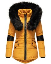Navahoo Nirvana Damen Parka Winterjacke mit Kunstfell Gelb Größe L - Gr. 40